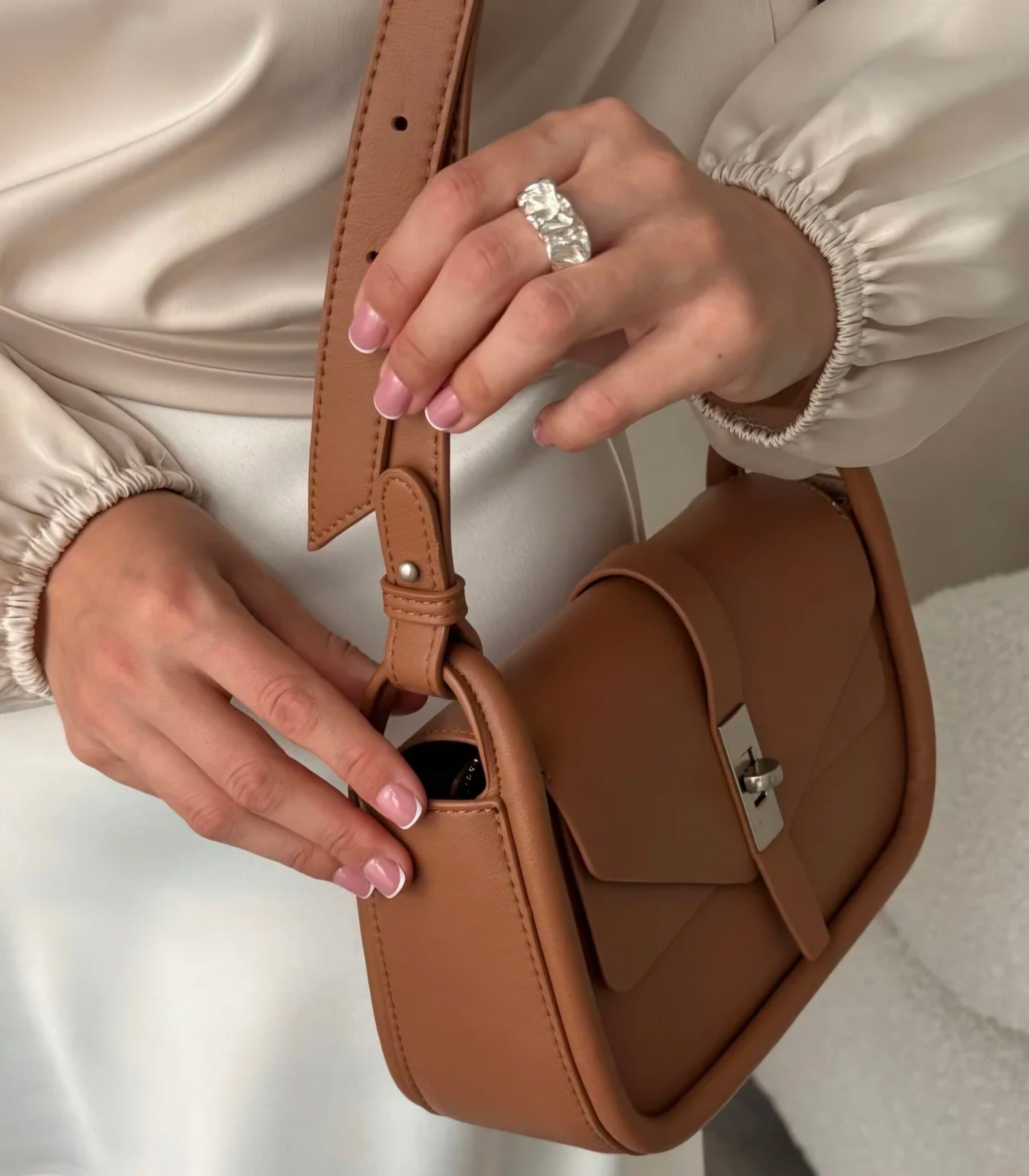 صُممت إيرينا لتلبي ذوقك في التفاصيل الراقية. قطعة فنية تفيض بالأنوثة، سواء حملتيها بيدكِ كلمسةٍ رقيقة أو ارتديتها على الكتف لتنعمي بالراحة والحرية. حجمها المتوسط يوفر مساحة مثالية لكل ضرورياتك اليومية، مما يجعلها الرفيق المثالي من إطلالات النهار إلى سهرات المساء.