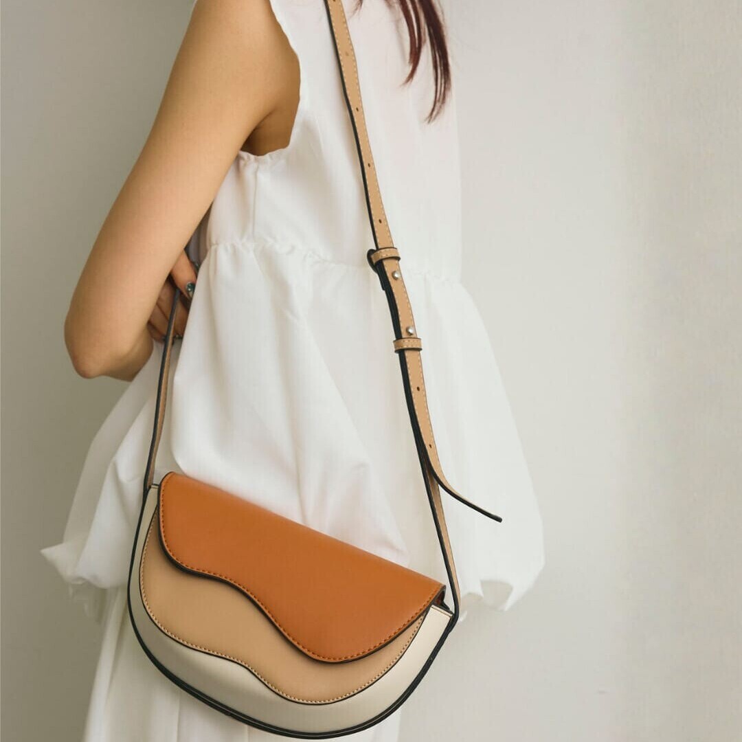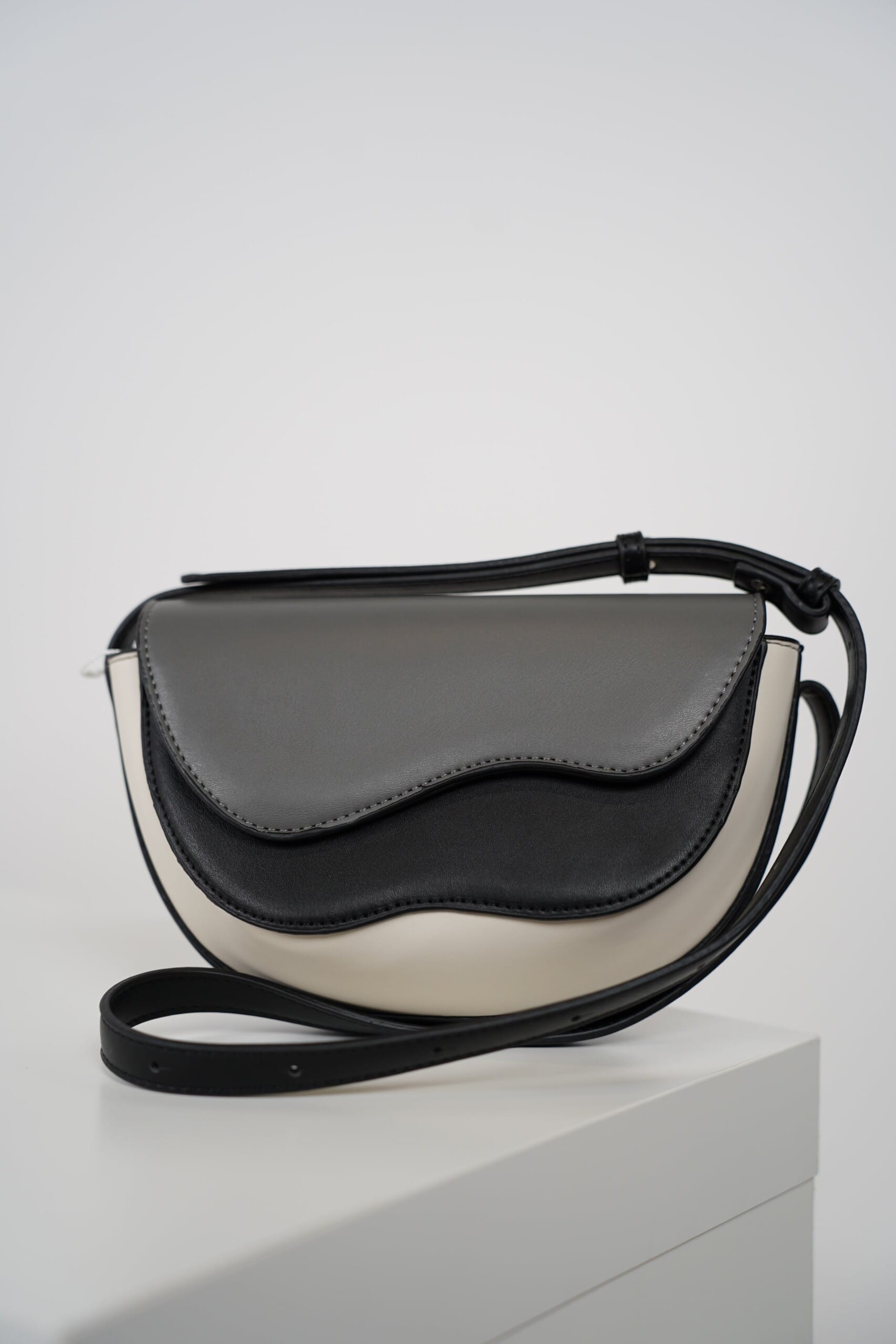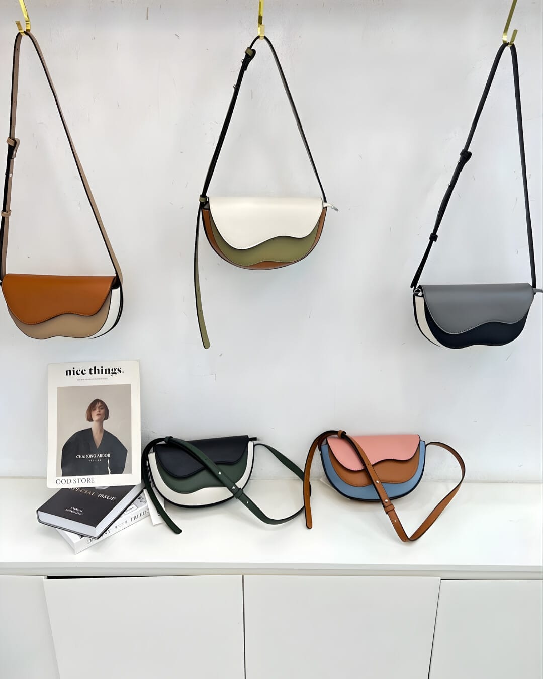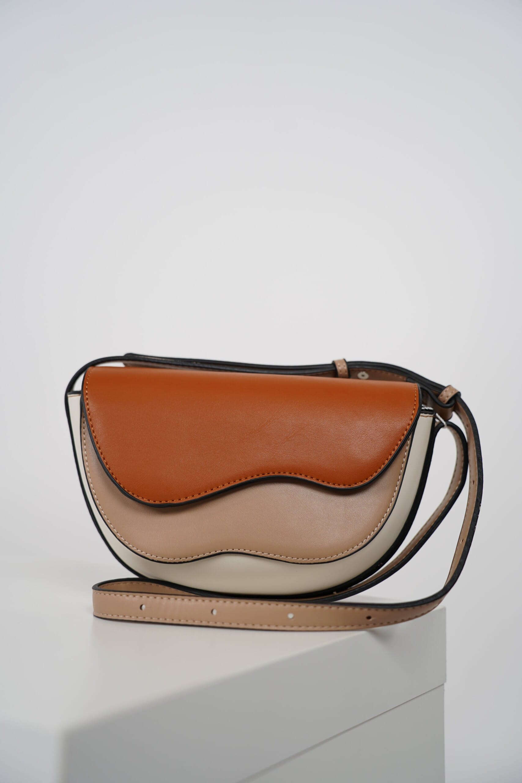 حقيبة الانيا كروس بتصميم يلفت الأنظار برقة ألوانه وجمال تنسيقه. مزيج من الوردي الناعم، البني الكراميل، والرمادي ،الاوف وايت والاسود يمنحها لمسة عصرية متميزه. تصميم الغطاء المتموج يضيف لمسة أنثويه ناعمه، إلانيا كروس قطعة مميزة تستحقينها.