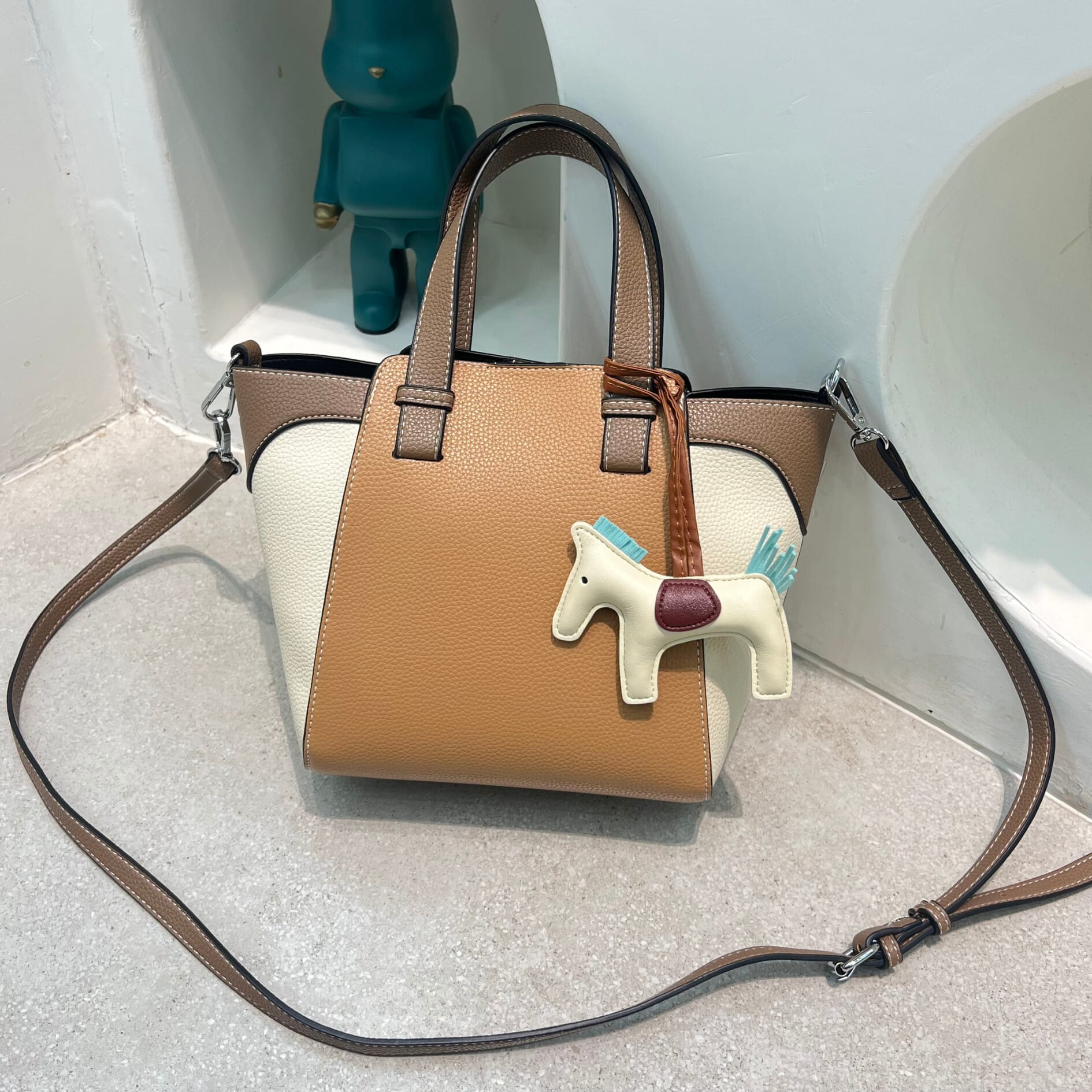 حقيبه بريميوم مصنوعة من جلد عالي الجودة. تتميز بانحناءاتها الناعمة وشكلها الجذاب، لتناسب احتياجاتك اليومية بإطلالة فريده. مزيج الألوان الهادئة يمنحها لمسة أنثوية راقية، كما تأتي بحزام طويل يمكن ارتداؤه ككروس أو شولدر باج لمزيد من الراحة أثناء التنقل.