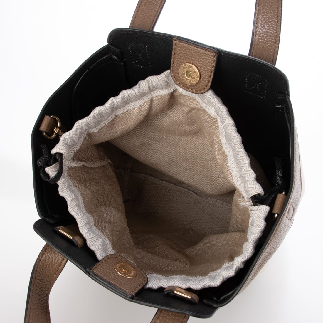 Charming Pretty Bella Bag crafted from high-quality leather. With its soft curves and elegant silhouette, Bella is perfect for carrying your daily essentials in style. The mix of neutral tones adds a modern touch, and the crossbody strap provides hands-free comfort for your day out.